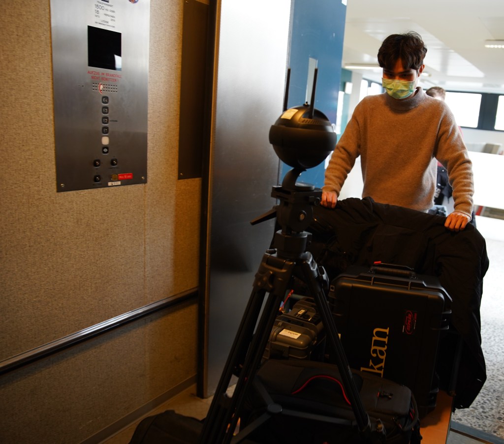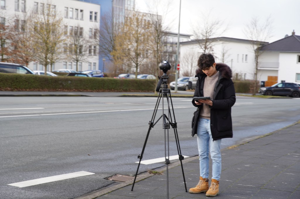 The cities we had a collaboration with were Aachen, Paderborn, Munich and Jena. The students received an interview template to fill in what they were going to say. We prepared a teleprompter, SLR cameras, camcorders, GoPros, microphones, and studio lamps. We used GoPros to record students’ introductions of each setup and shot multiple